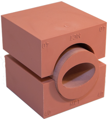 MCT Brattberg has a specially adapted range of insert blocks for the installation of waveguides. Where the waveguide passes straight through a transit system. It is possible to use a fixed type insert block, manufactured to the specific dimensions of the waveguide. However, if there is a possibility that the waveguide may pass through the transit at an undetermined angle then a revolving core version should be used, this is then installed inside a standard insert block.
